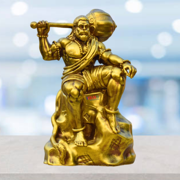 Premium Big Golden Bahubali Hanuman Idol Sitting on Mountain, Home Decor Item Hanuman Murti Statue