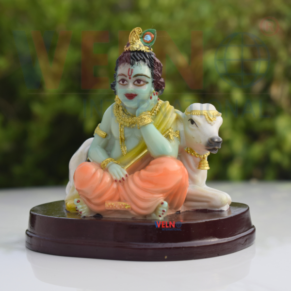 - Exquisite Sri Krishna with Cow Idol Hindu God sculpture Crafted from Durable Poly Resin.