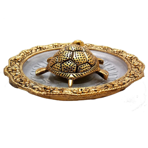 Vastu Feng Shui Tortoise on Plate for Good Luck Handicraft Showpiece (Kachhua/Turtle with Glass Plate for V)