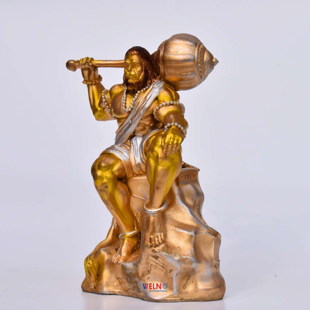 With our magnificent “Bahubali Hanuman” figure, a true masterpiece designed to captivate your senses, you can indulge in the luxurious beauty of spirituality. This magnificent work, with its rich antique finish and meticulous attention to detail, is a monument to the union of spirituality and luxury. The expertly created statue portrays Lord Hanuman in a powerful stance, with his hands resting on his prized weapon, signifying fortitude and defense. Because of its exquisite design and high-quality materials, it is highly sought-after as a mark of commitment and taste.