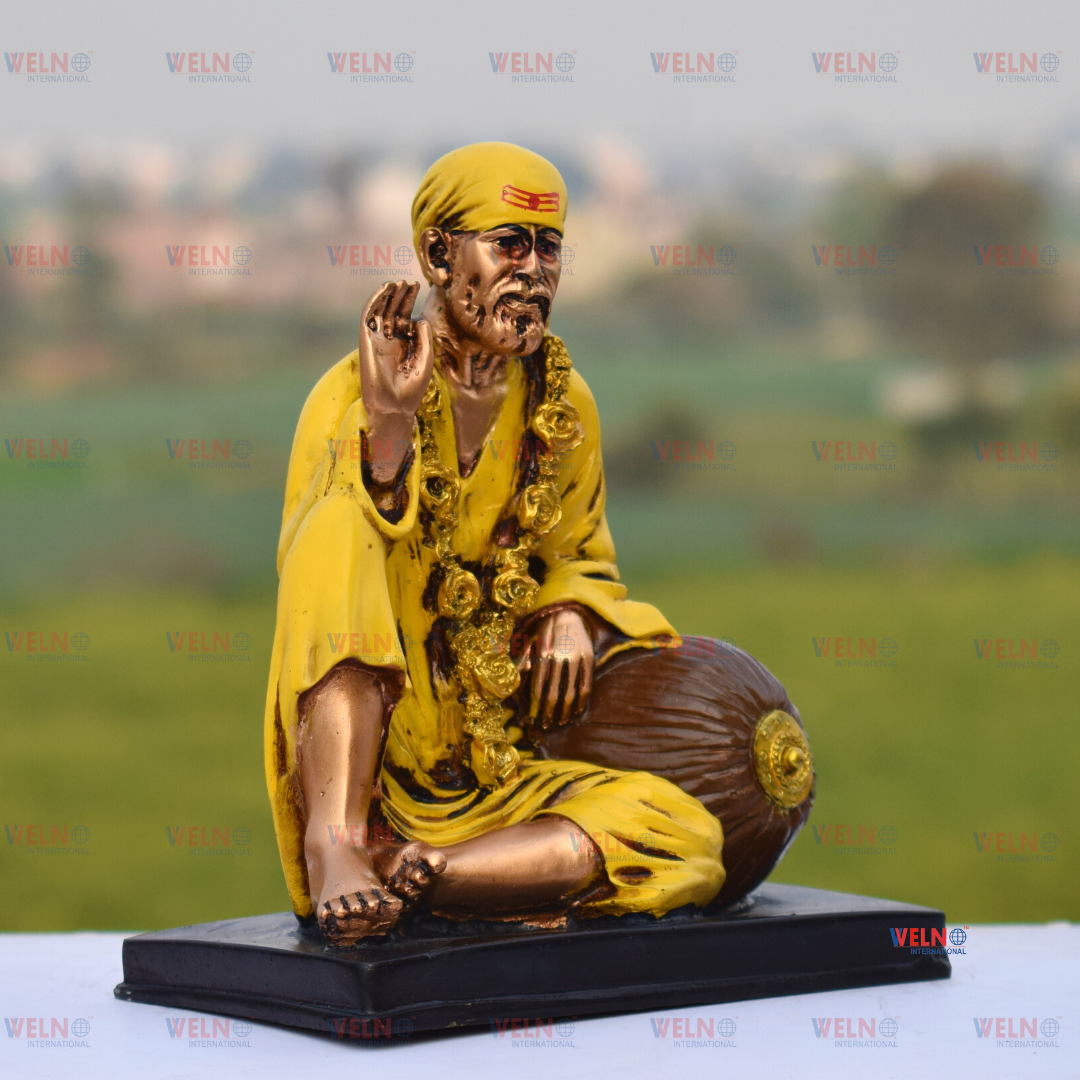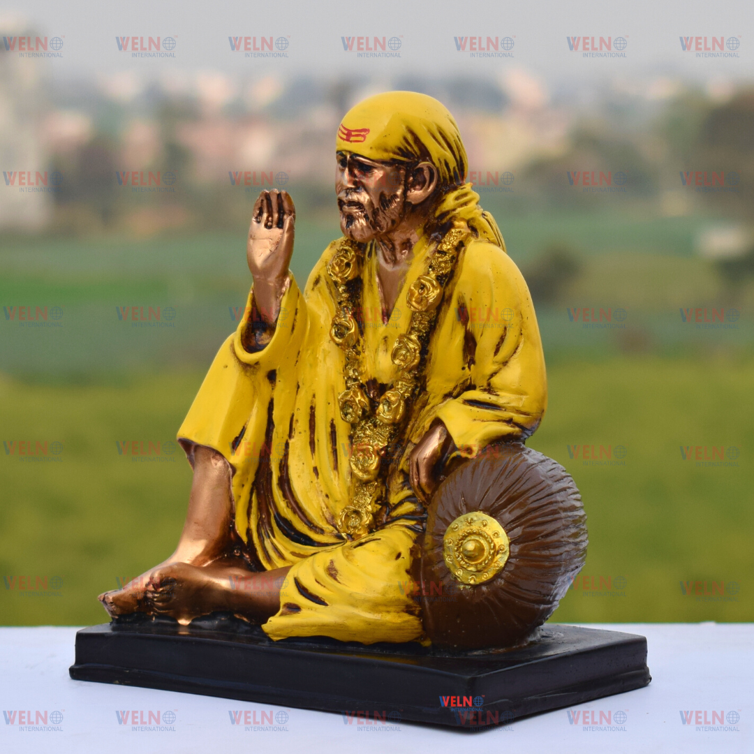 Yellow Sai Baba Statue Sai Nath Idol Sitting on Singhasan for Home Decor