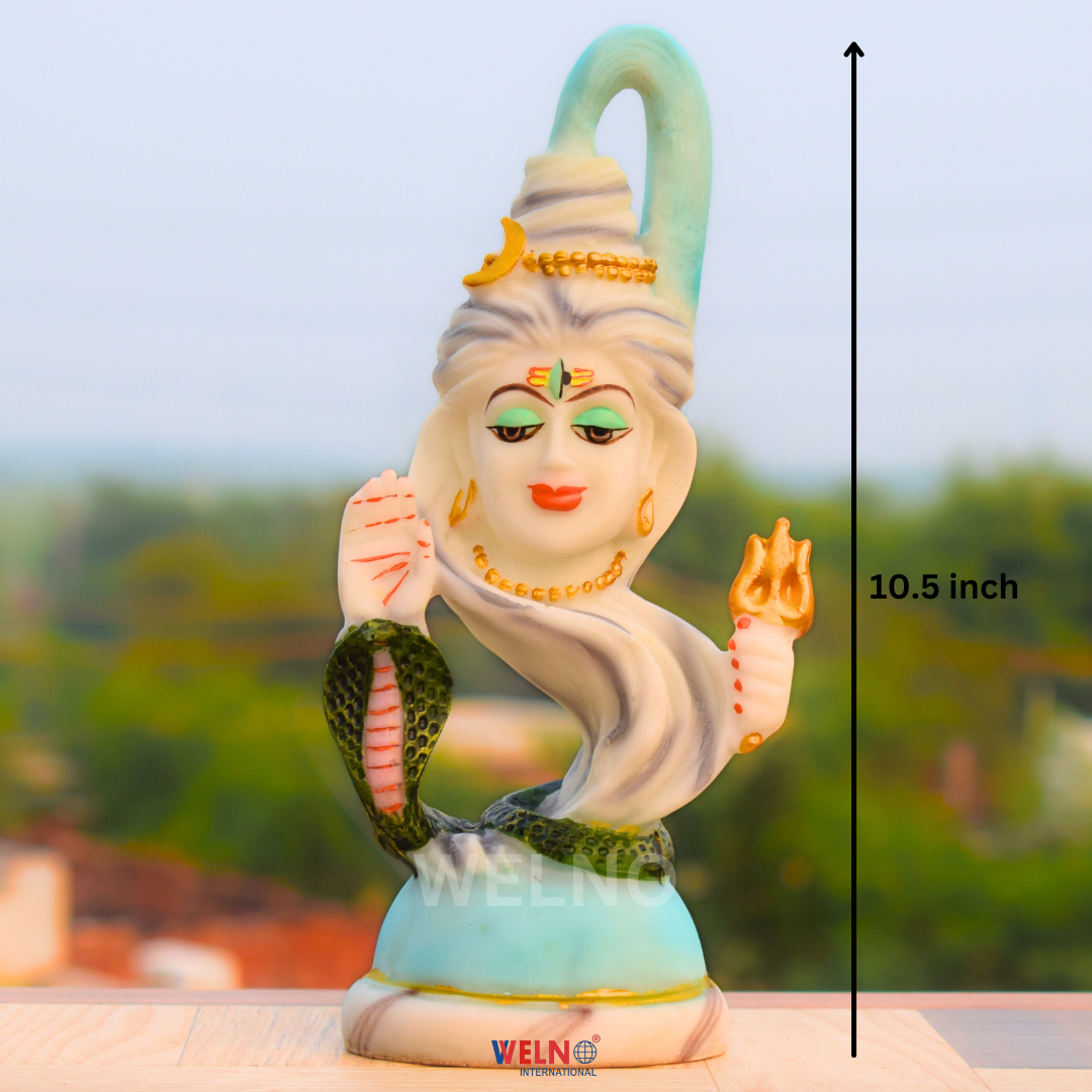 This ornamental murti can be utilized as table decor, showcase decoration, or interior design accessories for pooja mandirs. The Hindu Supreme God ensures the cycle of life by destroying evil, ignorance, and death. Lord Shiva is a highly revered Hindu deity, who is part of the great holy Trinity (Brahma, Vishnu, Mahesh/Shiva – the Creator, the Preserver, and the Destroyer). ‘Shiv’ means welfare. Shiva is not only a Lord but is also considered the prime God in the Panchdev Pujan. In the Shiv Mahimna strict, Pushpadant has described him in a wonderful manner by mentioning him as unborn, the reason for everyone’s existence, creator, nurturer, and destroyer. He is known as Mahakal – One who is beyond Time.
