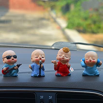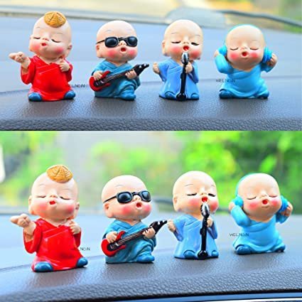 Unique Singing Synthetic Resin Buddha Monk Statues, Small, Decorative Showpiece, Perfect for car Dashboard, Little Baby Monk, Buddha Set of 4 Pcs, Lord Buddha Idol (Singing Monk)