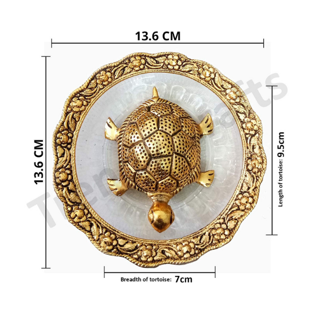 Vastu Feng Shui Tortoise on Plate for Good Luck Handicraft Showpiece (Kachhua/Turtle with Glass Plate for V)