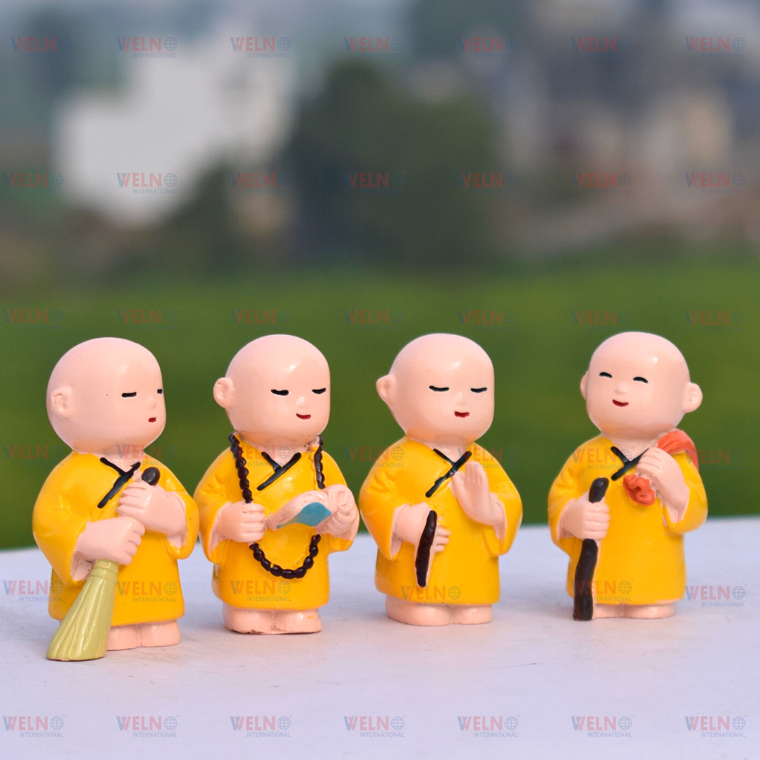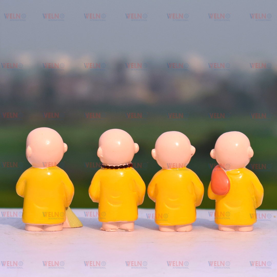WELNO International Antique Buddhism Monk Showpiece Baby Buddha Monk Set of 4, Perfect for car Dashboard, Little Baby Monk, Lord Buddha Idol (Buddha Idol)